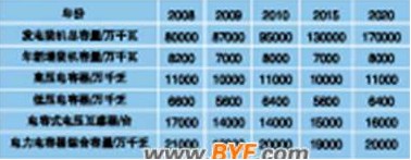 根据年新电装机容量、有关技术和市场信息和历年生产供货统计,得出的电力电容器综合容量预测值见表1。